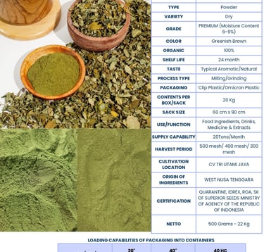 We export the best quality dried moringa leaves. We source our products from the best region in Indonesia.
