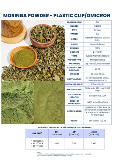 Green Harvest International supplies and exports a comprehensive range of Moringa commodities and finished products to the global market.