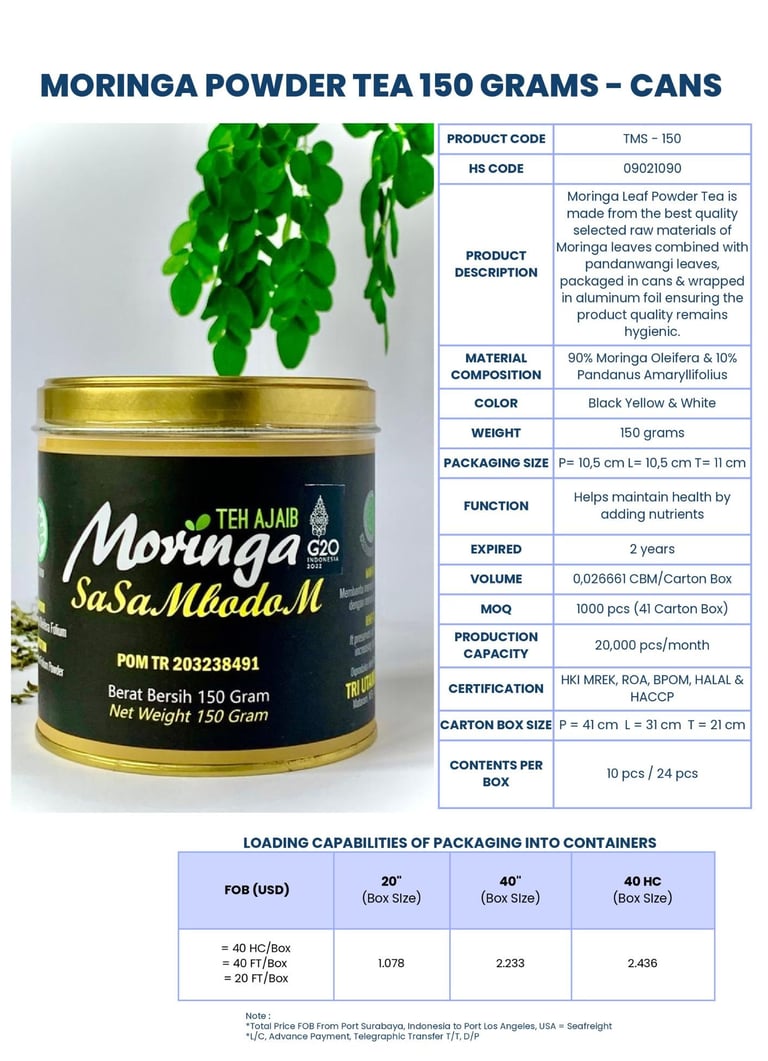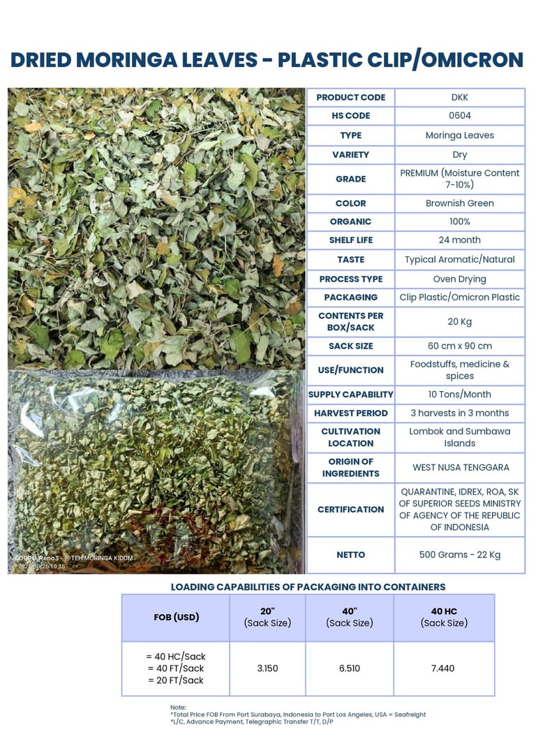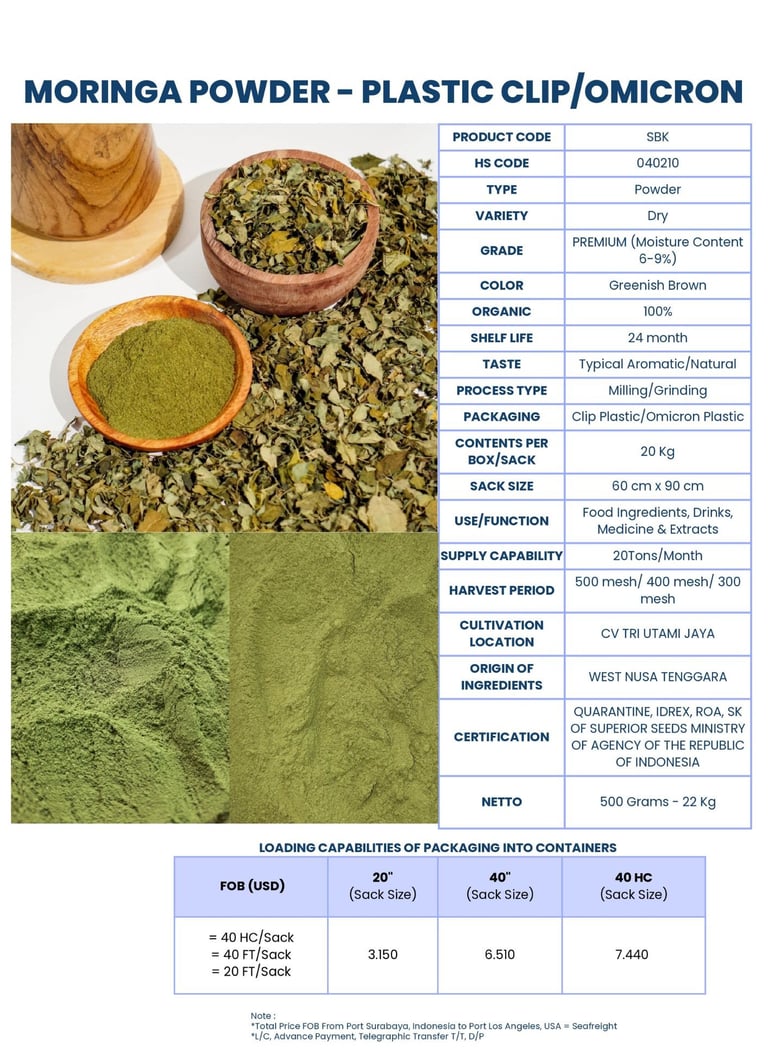 At Green Harvest International, we supply high-quality moringa products, including dried leaves, whole dried seeds, finely processed powder and tea bags.